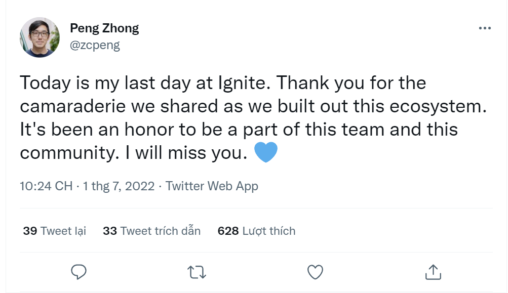 Ignite – công ty khởi tạo hệ sinh thái blockchain Cosmos đã chính thức sa thải hơn 50% số nhân viên hiện đang làm việc trong tuần qua. Tin tức được công bố khi CEO Peng Zhong của Ignite nói rằng anh ấy sẽ rời công ty đồng thời trăn trở câu hỏi về tương lai của Ignite.