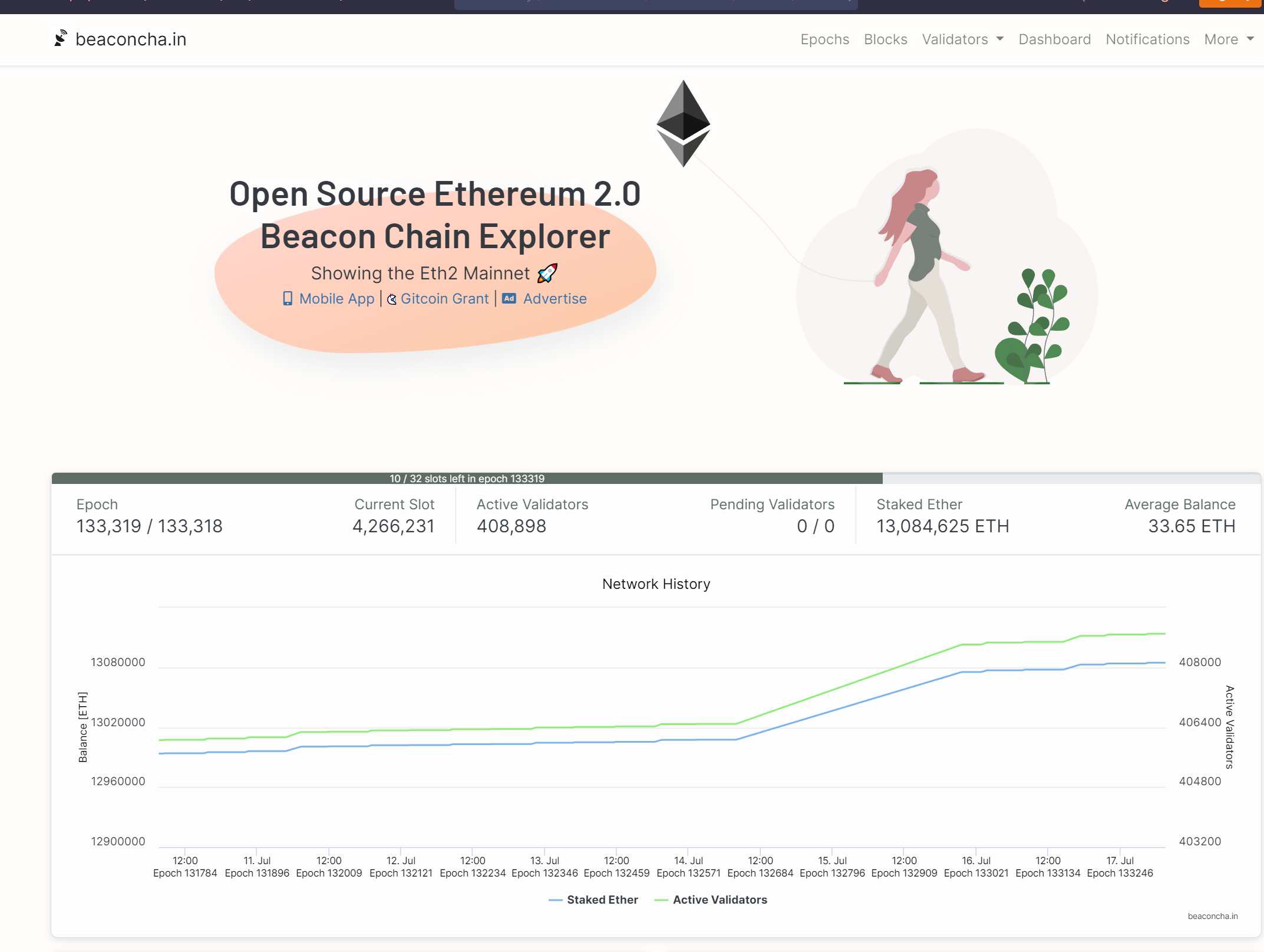Chuỗi Beacon Chain ra mắt vào tháng 12/2020, hoạt động theo phương thức bằng chứng cổ phần, giúp nhà đầu tư có thể staking tùy thích số ETH mà họ đang có. Những con số ấn tượng mà Beacon Chain đã đạt được: 400.000 người xác thực (validator) với 12 triệu ETH tương đương 9,9% nguồn cung token đang lưu hành. Điều này đã phần nào khẳng định sự tin tưởng của người dùng Ethereum cũng như cộng đồng tiền điện tử vào bản cập nhật The Merge sắp tới.