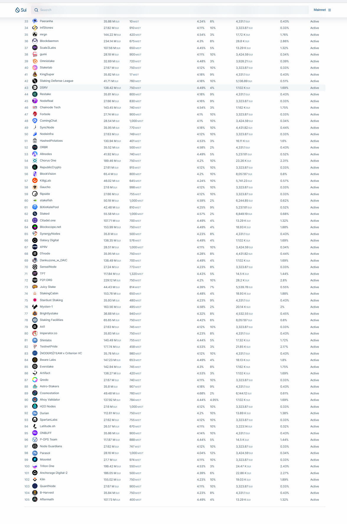 105 người xác nhận+ còn mở rộng nữa chỉ cần có 20 triệu Sui sẽ vào top xác nhận bên Sui blockchain